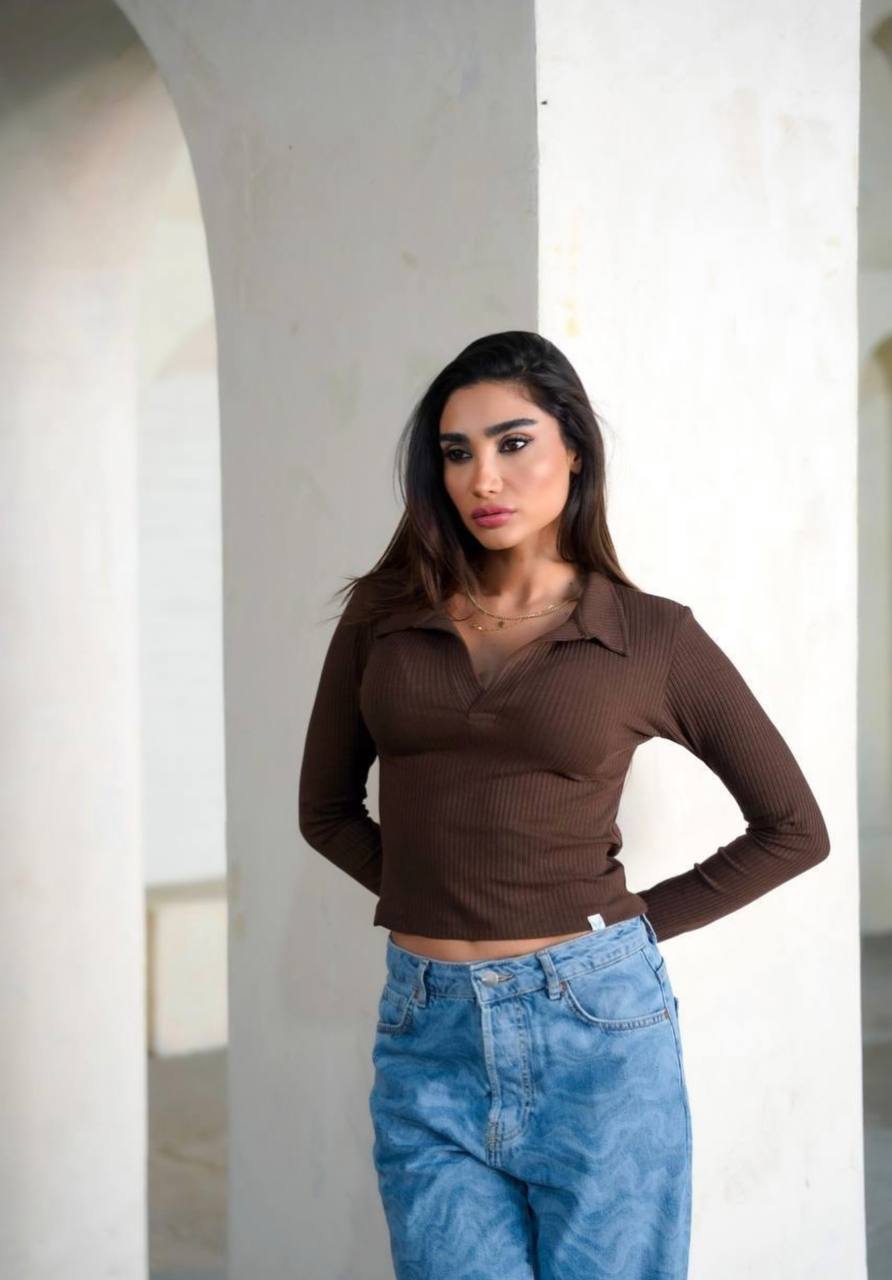 کراپ یقه شکاری آستین بلند آهو